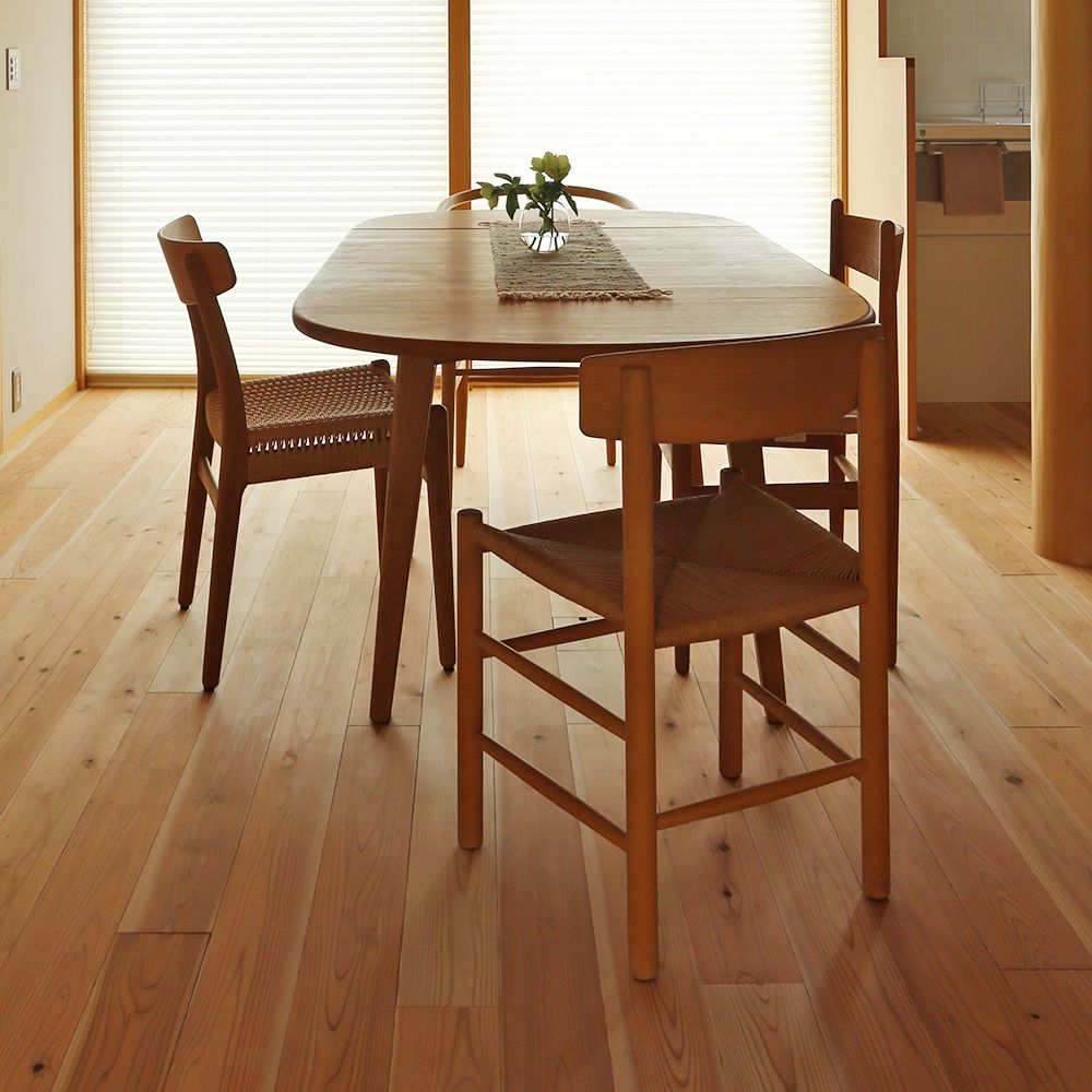 今回の設えでは、全ての椅子のフレームを「オーク材オイル仕上げ」、座面を「ペーパーコード」で統一しています。