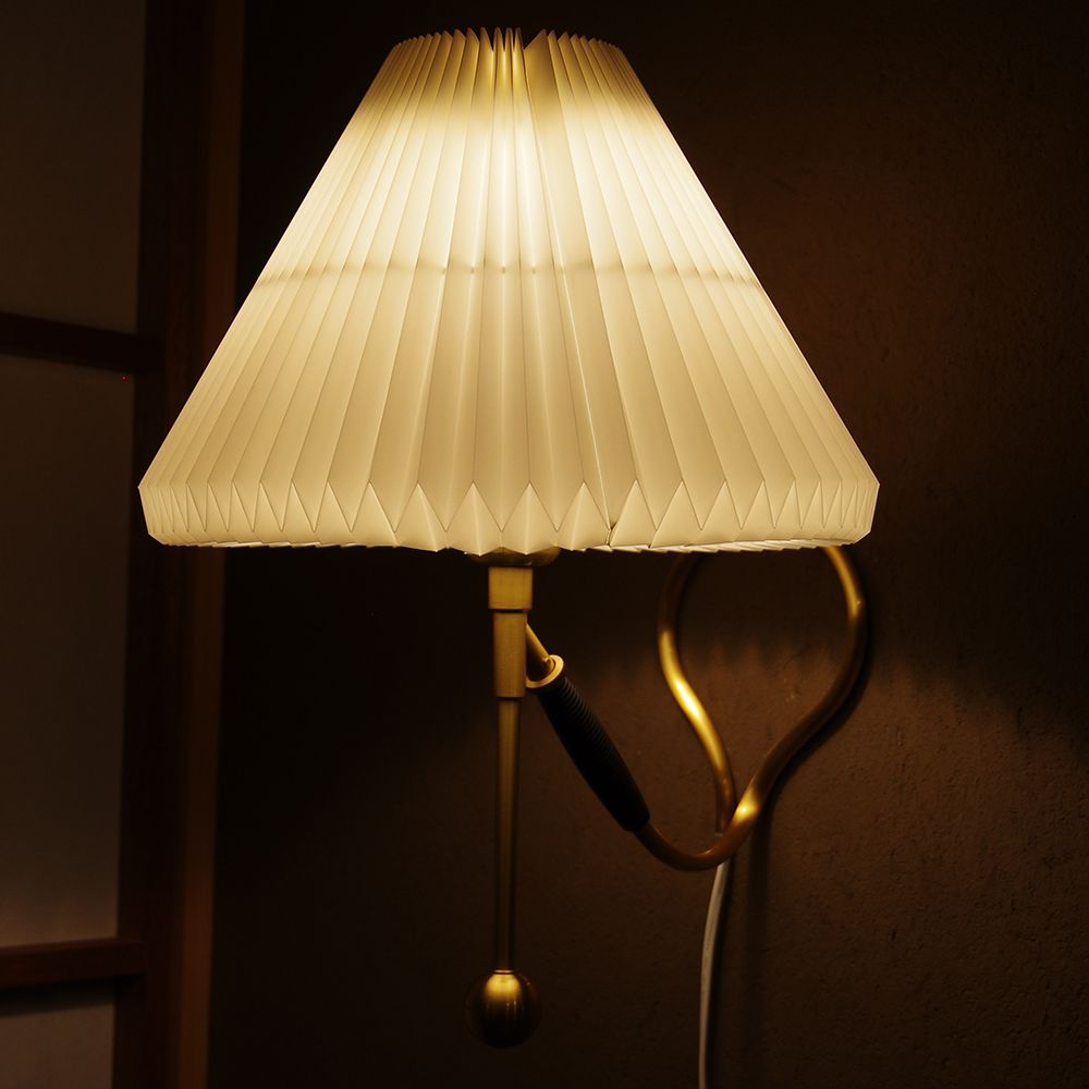 1945年、「コーア・クリント」デザインの名作。テーブル/ウォールの両用で使える柔軟性が最大の魅力です。真鍮フレーム×手折り“Model 2”シェード(側長21cm)の取り合わせが、クラシックで力強い存在感があります。模様替えや引っ越しの際も“置く/掛ける”を切り替えできるので、長く使うほどこの証明の真価を発揮してくれます!