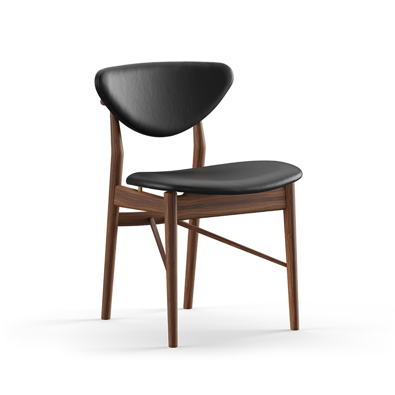 1955年に誕生した109チェアの最大の特徴は、ディティールまでこだわったアームレストです。アームレストの先端を窪ませ、親指にぴったりとフィットするよう丁寧に削り出されている形がとてもユニークなデザインです。108チェアと同様に、椅子の座り心地の良さは言うまでもありませんが、ご自宅のダイニングにもレストランにも最適です。またワークスペースの椅子としてもおすすめです。フレームの樹種は、オーク、ウォルナット、チーク、またはブラック塗装仕上げ、張地はレザー又はファブリックからお選びいただけます。
