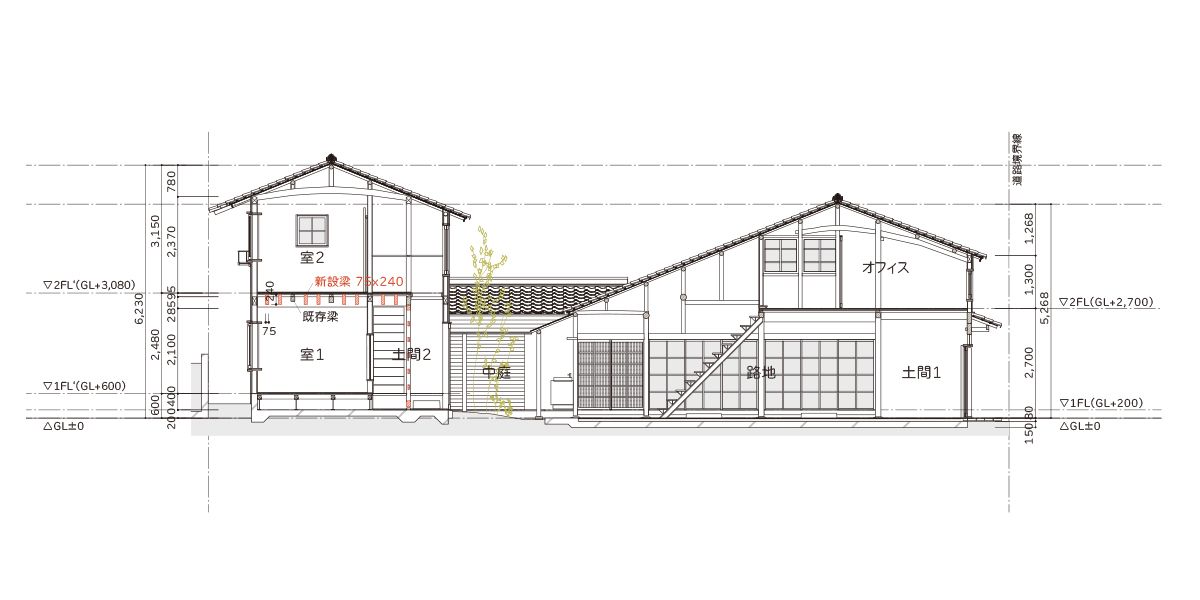 百町スタジオ断面図