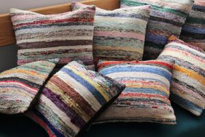天板に2本の真鍮製のストリップが付いているので、クッションをしっかりと固定されます。