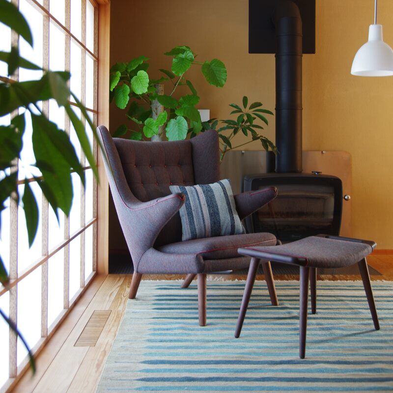 こちらのお家は、テーブルは、カール・ハンセン&サンのCH337テーブルを使っており、伸長板や脚のブラックとの相性も良く障子からこぼれる優しさが調和して和モダンなイメージとなっています。